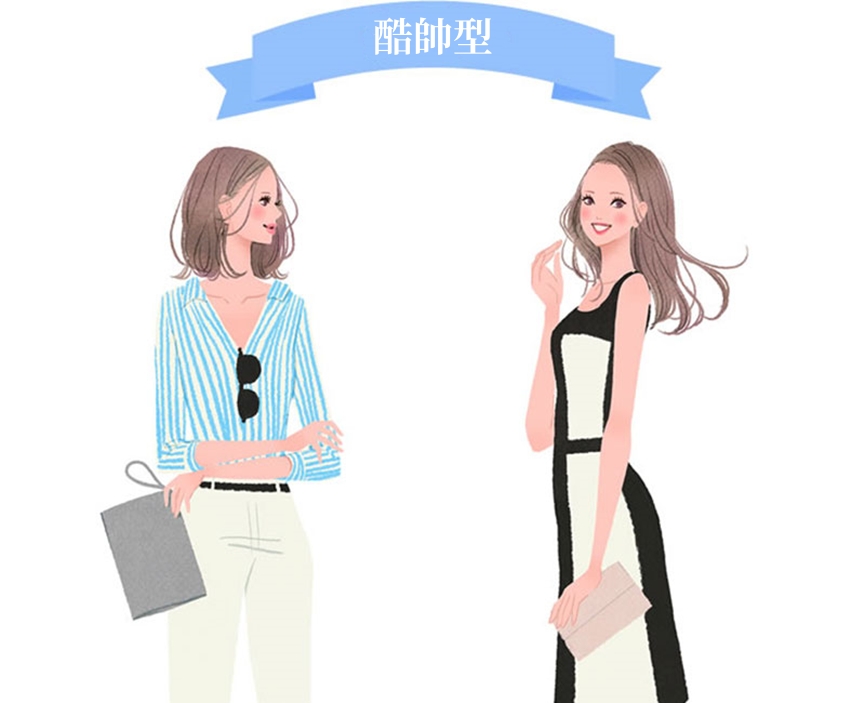 八種類型中的每一種的特點,它們是基本的 4 種類型:率性休閒、可愛、帥酷、嬌柔;及再細分類為八種類型(除了上述四型再增加柔和優雅、活潑可愛、帥酷、優雅)