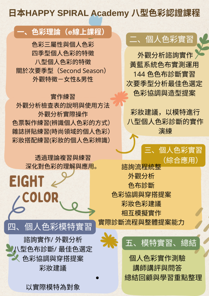 二、日本HAPPY SPIRAL Academy八型色彩認證課程說明: